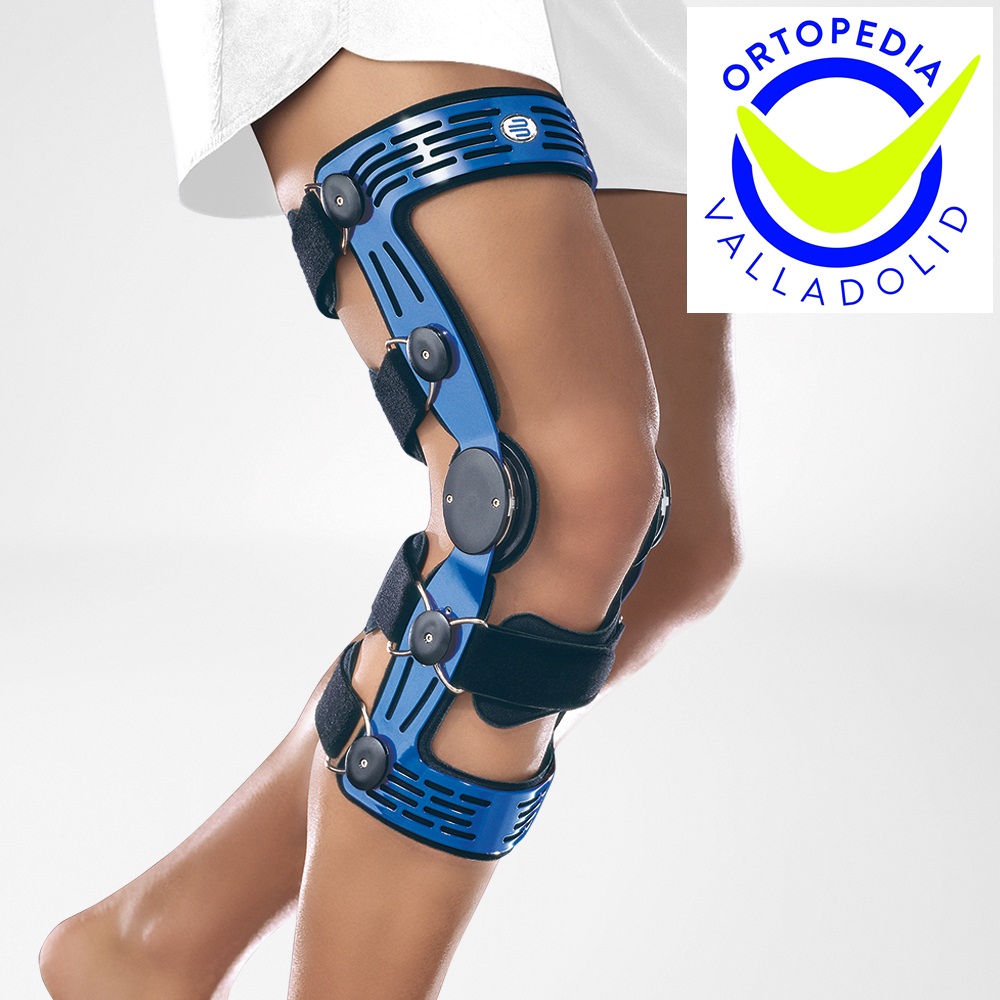 Ortesis de rodilla funcional formada por un marco de aluminio muy ligero con diseño anatómico que se coloca directamente sobre la pierna al ser totalmente abierta. Dispone de un sistema de 5 cinturones para una perfecta adaptación y ajuste. Los enganches de los cinturones se pueden desplazar para facilitar su colocación de forma individual. Un juego de almohadillas condilares de diferentes grosores permietn su adaptación perfecta en función del grado de inflamación de la rodilla. Una articulación con control de flexo-extensión permite la limitación de forma independiente una de la otra. La ortesis viene aclchada en su parte interior para mayor comodidad.
